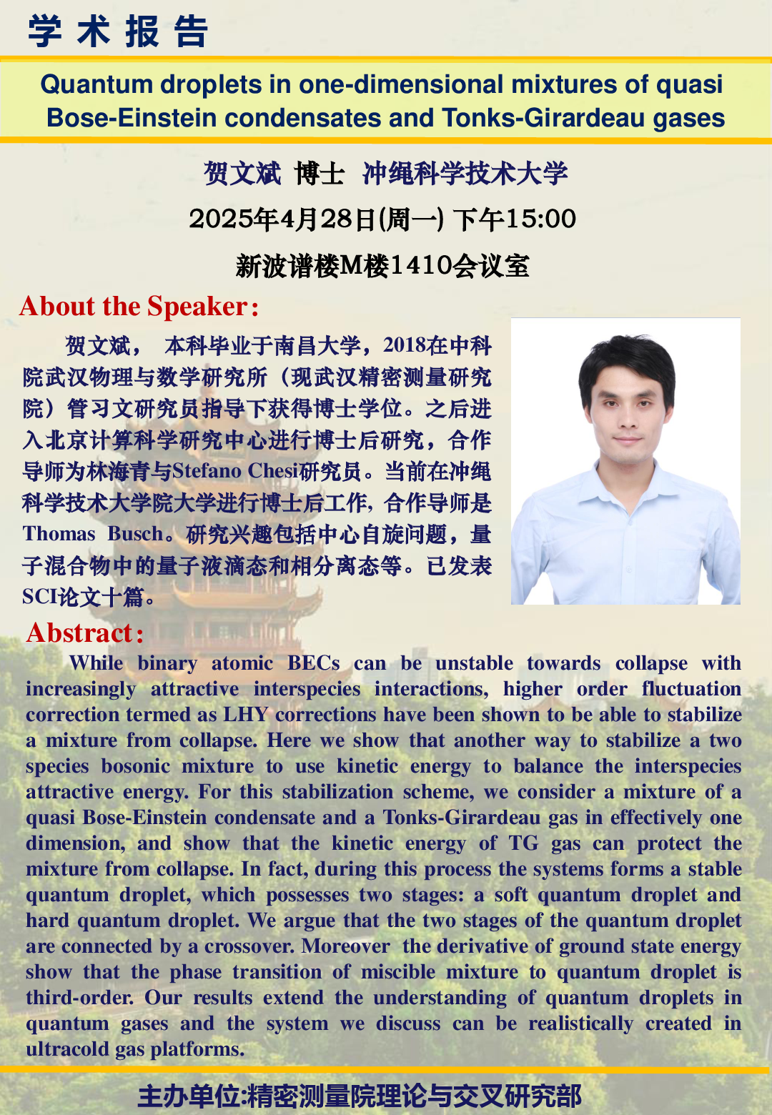 2025年4月28日evo真人视讯理论与交叉部学术研讨报告